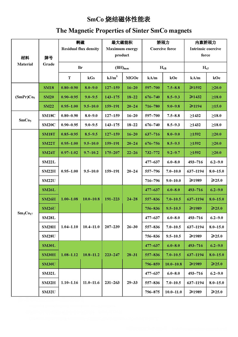 1,介紹:釤鈷磁鐵(優(yōu)尚磁力磁鐵 )又稱釤鈷磁鋼,釤鈷永磁體,釤鈷磁鐵,稀土鈷永磁等。是由釤、鈷和其它金屬稀土材料經(jīng)配比,溶煉成合金,經(jīng)粉碎、壓型、燒結(jié)后制成的一種磁性材料,具有高磁能積、低的溫度系數(shù),高工作溫度可達350℃,負溫不限,在工作溫度180℃以上時,其大磁能積及溫度穩(wěn)定性和化學穩(wěn)定性均超過釹鐵硼永磁材料。釤鈷磁鐵具有很強的抗腐蝕和抗氧化性,所以被廣泛應(yīng)用在航空航天、國防軍工、微波器件、通訊、醫(yī)療設(shè)備、儀器、儀表、各種磁性傳動裝置、傳感器、磁處理器、電機、磁力起重機 等